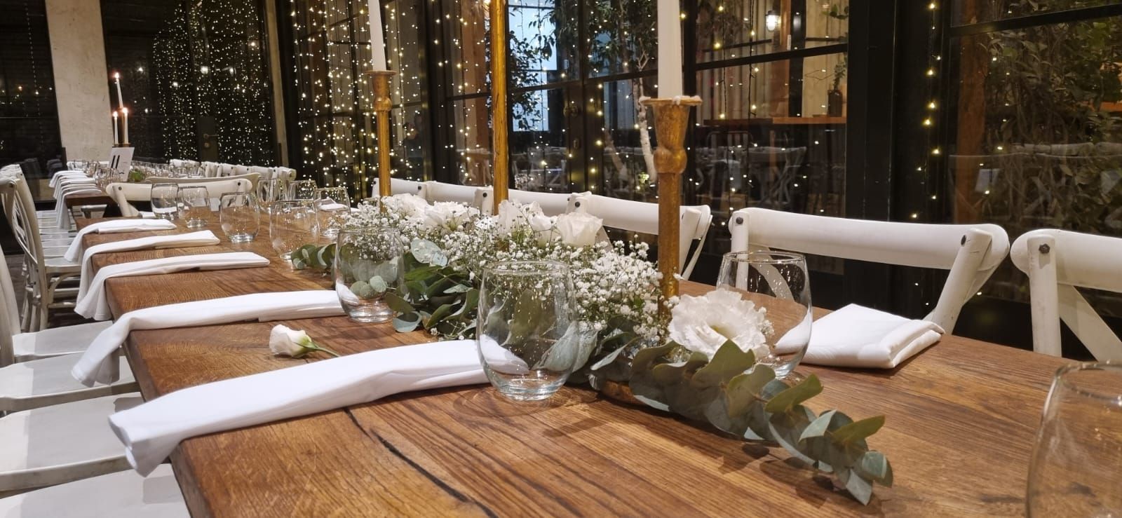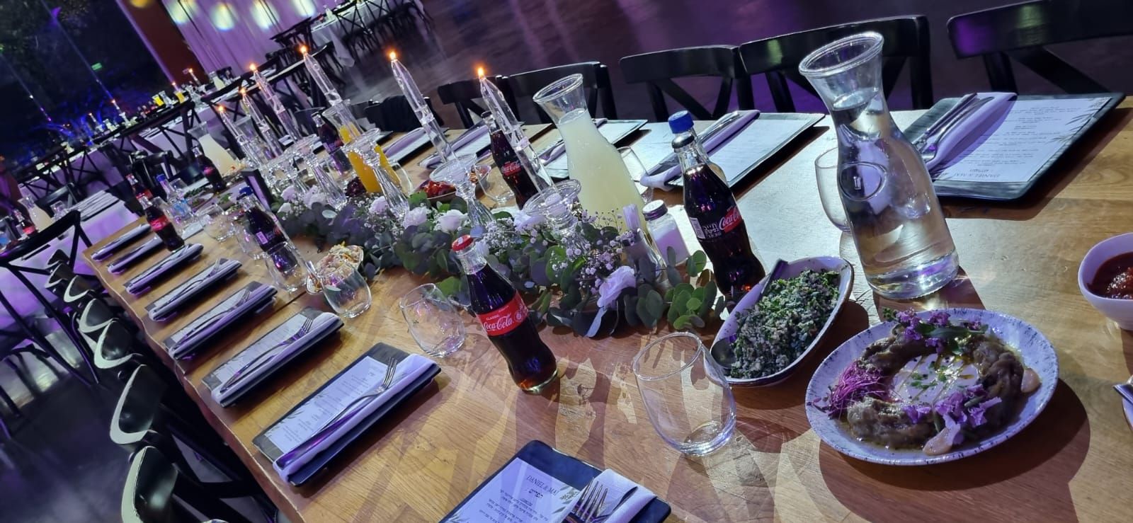 לפני פתיחת הדלתות – אנחנו עוברים שולחן־שולחן, מוודאים שכל נר דולק, שכל עלה במקום, ושכל פרט מוכן בדיוק כפי שתיאמנו.