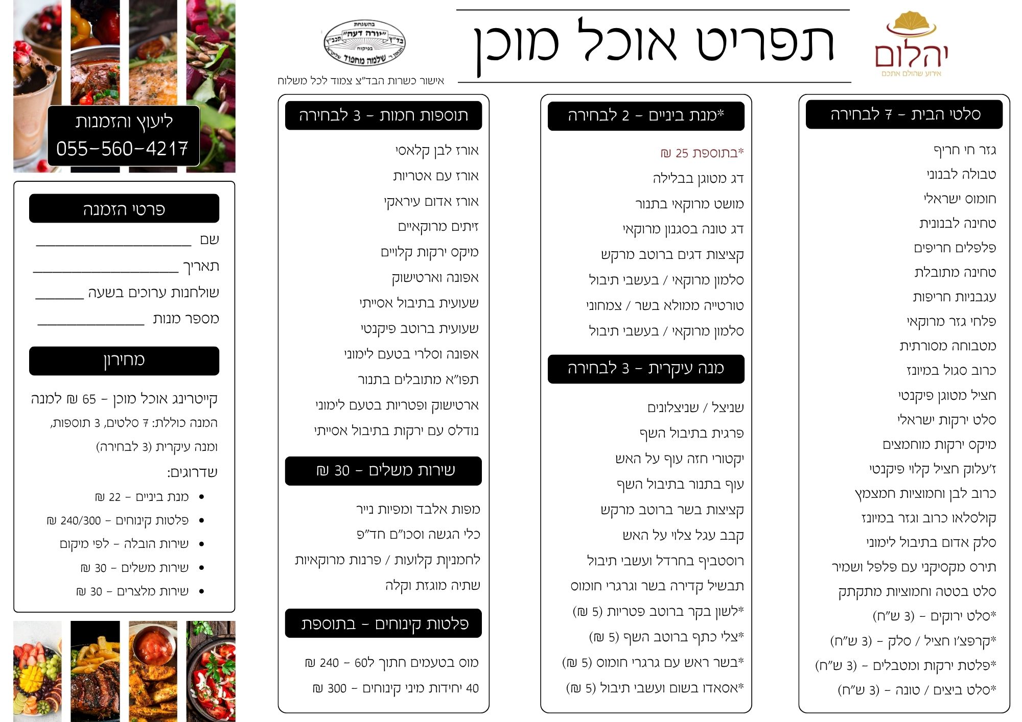 קייטרינג יהלום – תפריט אוכל מוכן בהכשר הרב מחפוד.