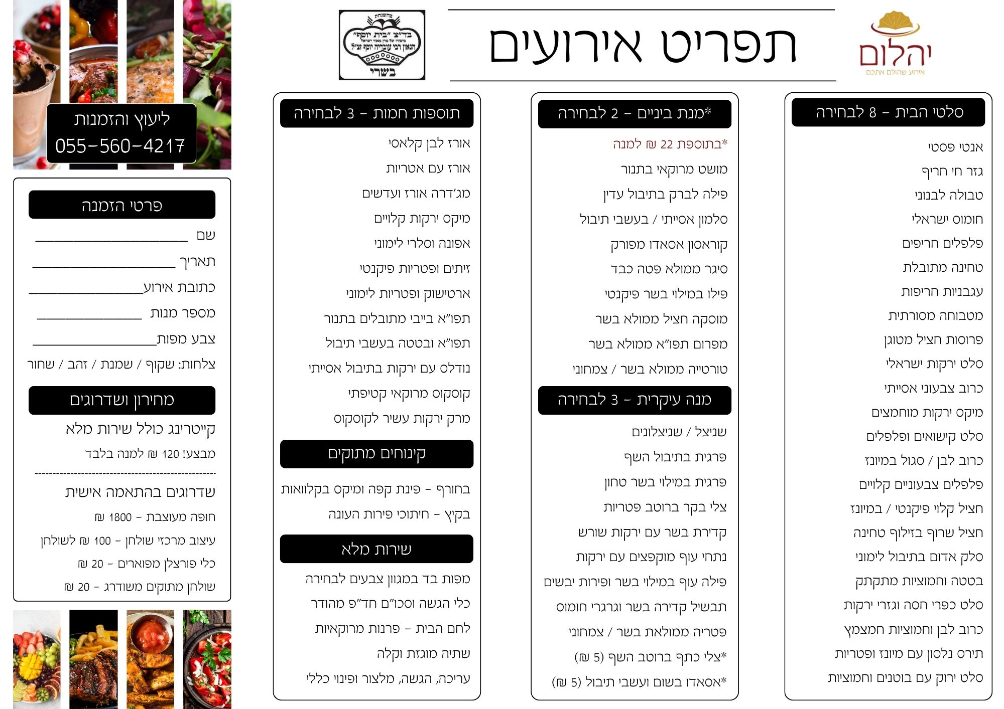 אם תרצו – נבנה לכם גם תפריט מותאם אישית (למשל: תפריט קליל לבר מצווה צהריים,