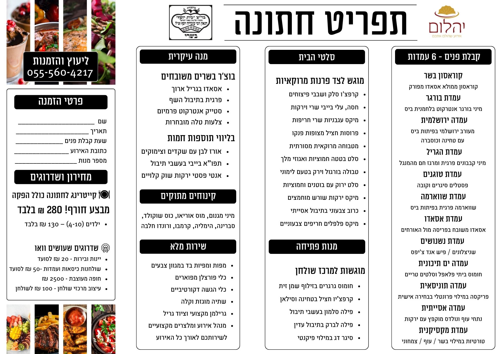 מחיר מבצע לזמן מוגבל: 280 ₪ למנה (כולל מע״מ)