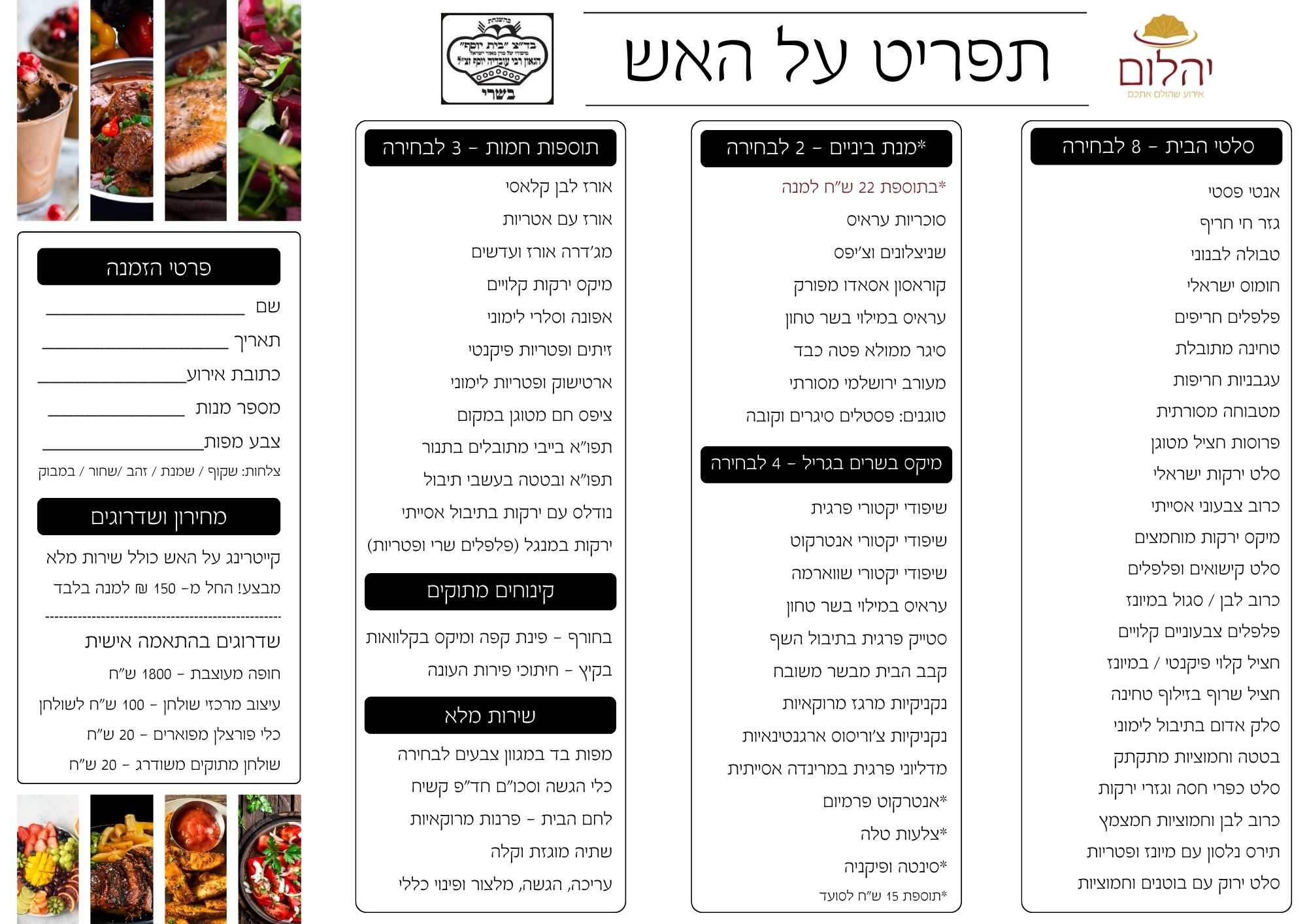 עם אפשרות להזמנה בכשרות הרב מחפוד בתוספת 10 ₪ למנה.