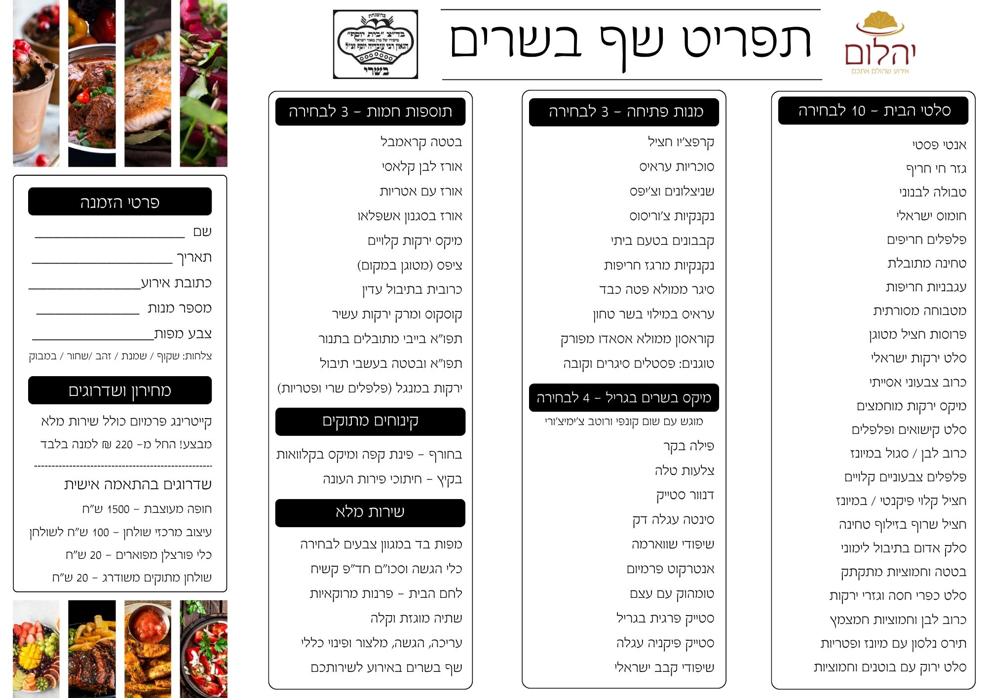 כל התפריטים שלנו בכשרות בד״צ בית יוסף,